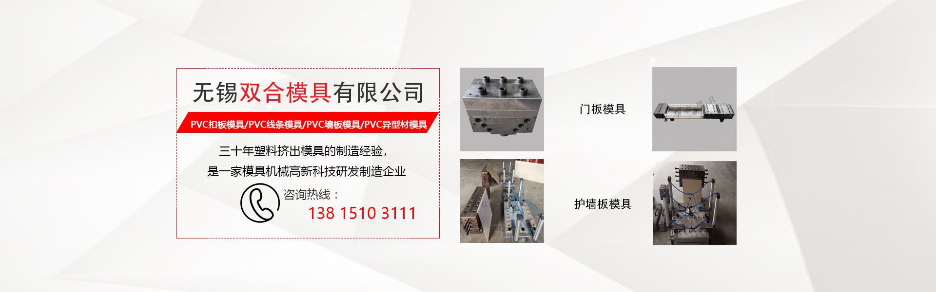 無錫雙合模具有限公司位于美麗的太湖之濱江蘇無錫,有著三十年塑料擠出模具的制造經(jīng)驗(yàn),是一家模具機(jī)械研發(fā)制造企業(yè)。專業(yè)制造設(shè)計(jì)各種PVC異型材擠出成型模具,主要有:PVC扣板模具、PVC線條模具、PVC窗臺(tái)板模具、PVC異型材模具、集成吊頂模具等產(chǎn)品。
